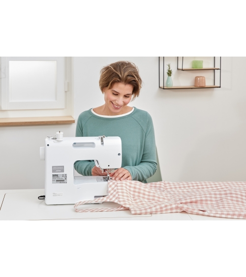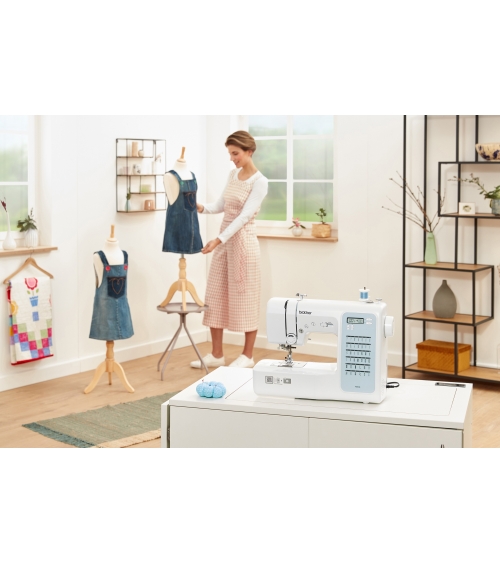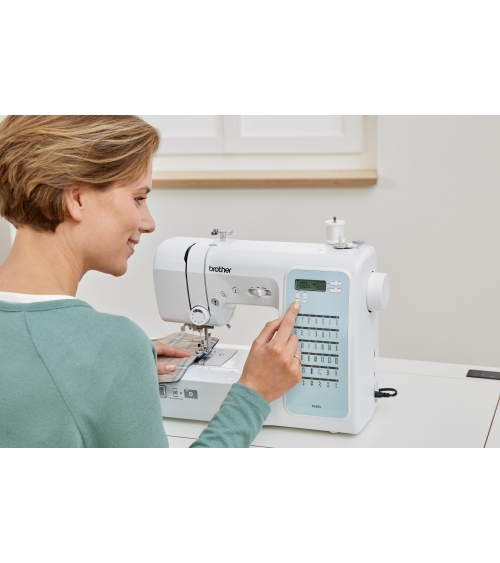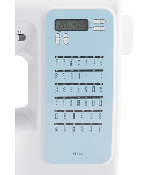 Elektronisessa ja vakaassa Brother FS40s ompelukoneessa on helppolukuinen nestekidenäyttö ja laaja 40 ompeleen valikoima. Koneen muovin määrää on vähennetty -46%, joka tekee sen yhdeksi markkinoiden ekologisemmaksi ompelukoneista! Vahva kone ompelee jopa yhdeksää kangaskerrosta.