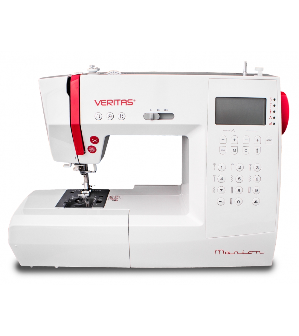 VERITAS Marion on erittäin monipuolinen elektroninen ompelukone, jossa on 310 erilaista ommelohjelmaa. Se ompelee jopa numeroita ja kirjaimia muutamalla helpolla asetuksella. Lisäksi saat täyden 10 x 1 -vaiheisen napinläven, jonka voit ommella helposti ja nopeasti ompelutöihisi ja vielä täysin automaattisesti. Monien ommelohjelmien suosikkiasetuksesi voidaan tallentaa helposti muistitoiminnolla. Koneessa on monta automatiikka-avustinta ja se esimerkiksi säätää leveyttä itse, jos haluat käyttää kaksoisneulaa. Suuren jatkopöydän mukana saat tilavan ja mukavan työtason.